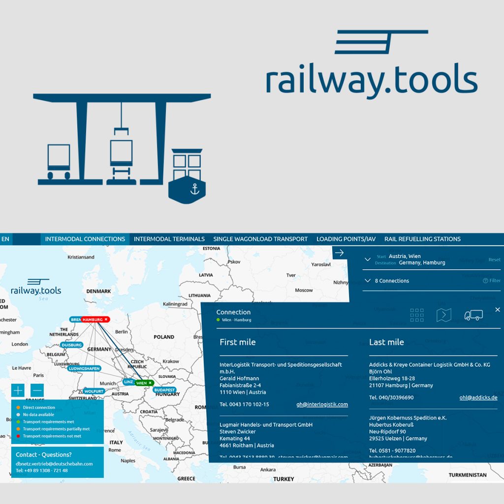 railway.tools (Deutsche Bahn | DB InfraGo) is the world’s first free web portal for intermodal transport. It provides information on where goods can be transferred from rail to road and vice versa across Europe.